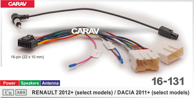 —CARAV 16-131 разъем 16-pin Renault 2012+, Dacia 2011+ выборочн. модели (Питание + Динамики + Антенна)