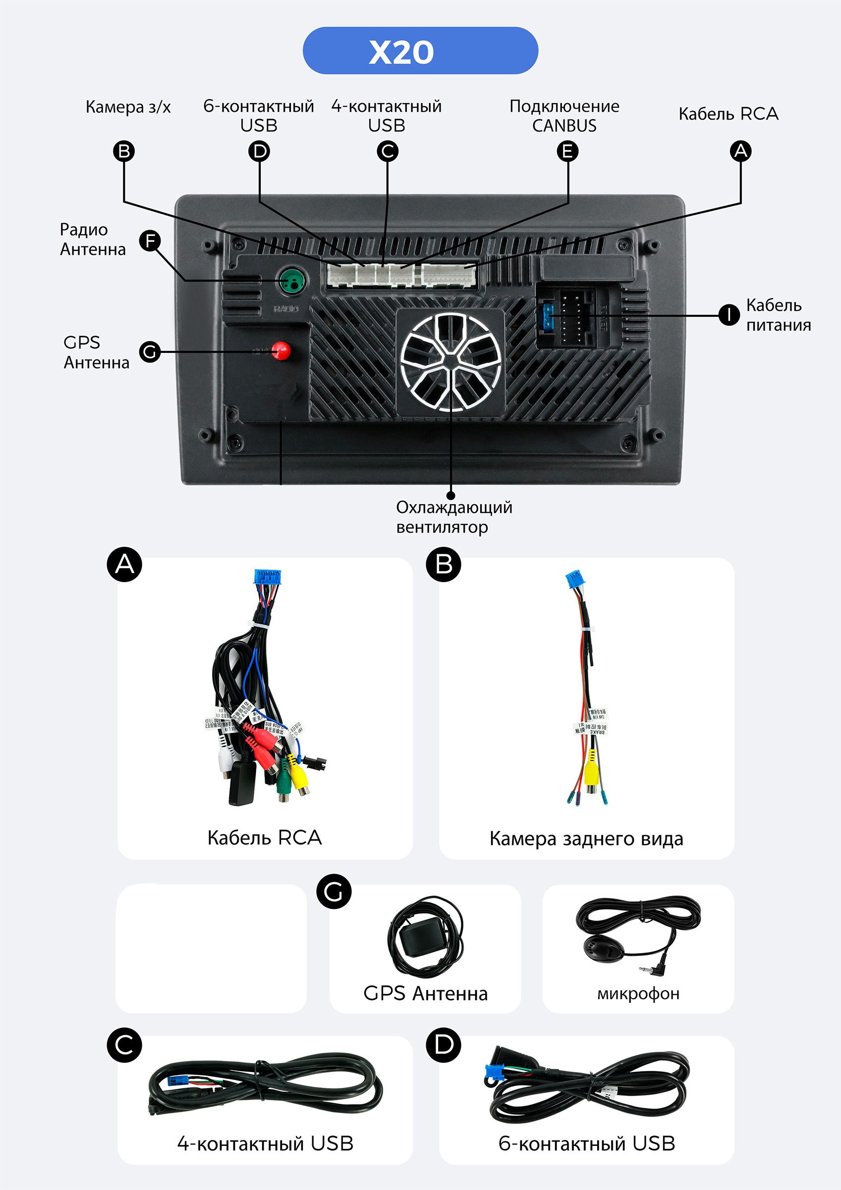 | Автомагнитола, провода питания (при необходимости укомплектованные адаптером каншины автомобиля), переходники USB (при необходимости), инструкция в электронном виде (доступна не для всех моделей), GPS антенна (для моделей с навигацией), микрофон громкой связи (опционально). | |